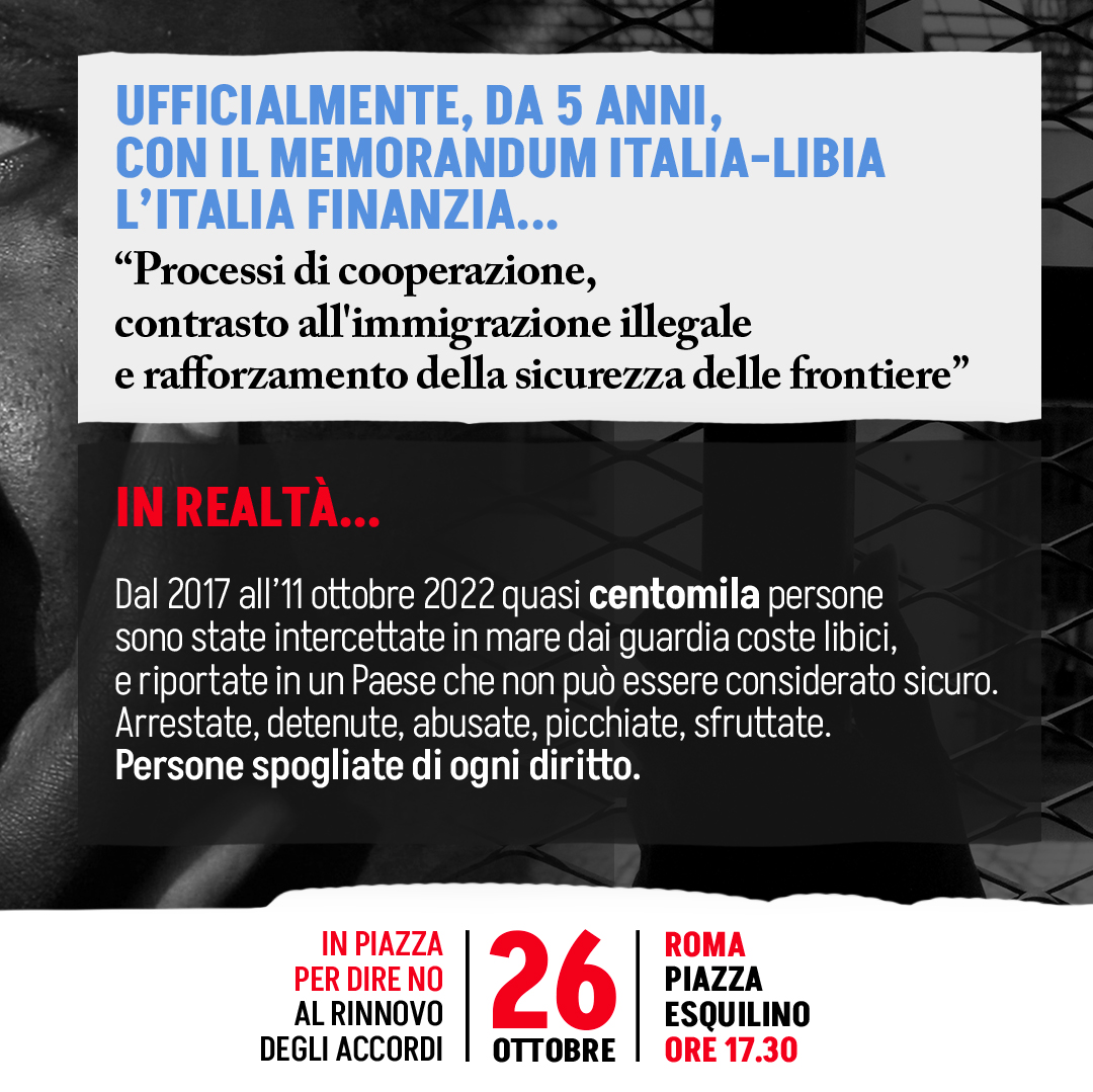 The Memorandum does not merely outline generic cooperation and projects. In fact, the agreement envisages support to the so-called Libyan Coast Guard, through funds, means and training: continuing to support it means not only contributing directly and materially to the repatriation of men, women and children, but also supporting the detention centres - officially defined as reception centres - where people are subjected to inhuman and degrading treatment, are abused and killed.