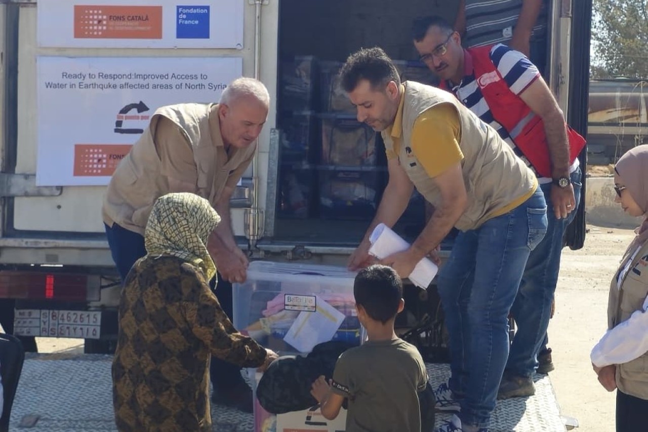 Un kit d’emergenza con aiuti di prima necessità per una famiglia sfollata