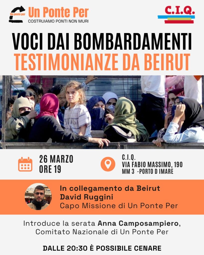 Il Comitato di Milano di Un Ponte Per organizza un incontro pubblico per approfondire la grave emergenza umanitaria in Libano e nella regione, con la testimonianza diretta di chi è impegnato sul campo.